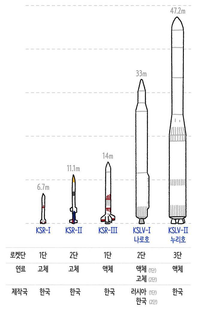 KSR 계획을 통해 어느 정도 발사체에 대한 기반을 쌓은 다음엔, 우리나라 스스로의 힘으로 우주발사체를 만들겠다는 목표를 가지고 다음 프로젝트를 진행했어요. 이름하여 KSLV(Korea Space Launch Vehicle), 한국형발사체 계획입니다. 최근에 독자 여러분이 뉴스를 통해 들어온 나로호와 누리호 같은 발사체들이 모두 이 계획의 일환들입니다.