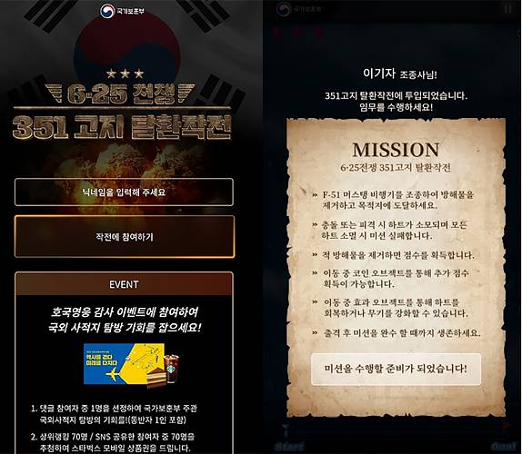 한편 ‘351고지 탈환작전’ 게임은 온라인(https://351.avivgame.com)과 국가보훈부 인스타그램 링크트리를 통해 참여 할 수 있습니다.