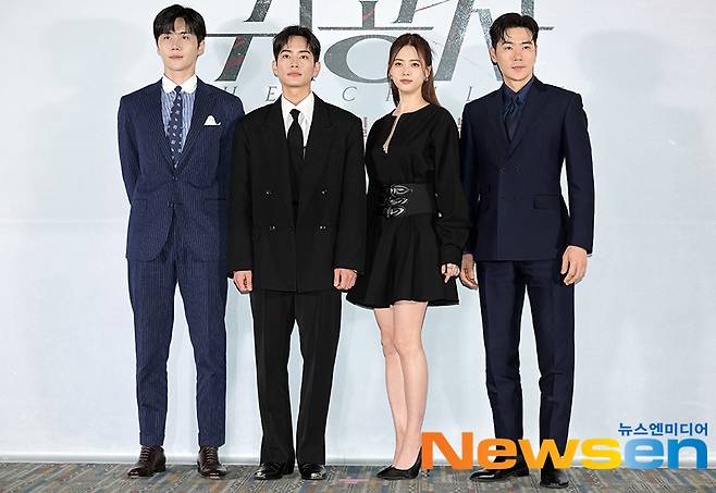 배우 김선호, 강태주,김강우,고아라, 박훈정 감독이 6월 8일 오후 서울 강남구 메가박스 코엑스에서 진행된 영화 '귀공자' 언론배급시사회에 참석해 포토타임을 갖고 있다.