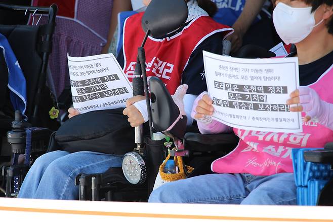 | ▲ 5월 31일 충북 옥천에서 '장애인 이동권 보장을 위한 집중결의대회'가 열렸다. |