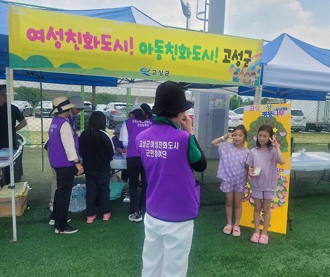 또한 고성군이 여성친화도시로 지정된 사실을 알리기 위하여 일회용 밴드와 볼펜 등 여성친화도시 홍보 물품을 배부하여 어린이들과 가족으로부터 큰 호응을 얻었다.