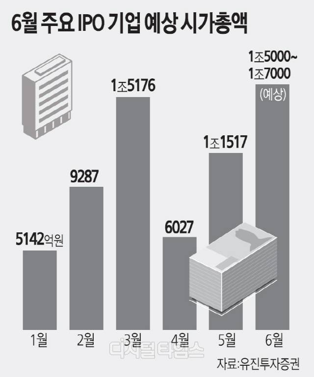 8일 유진투자증권에 따르면, 이달 IPO 예상 기업 수는 12~14개 수준이다. 지난 1999년부터 지난해까지 6월 평균 상장 기업수(11개)와 최근 5년(2018~2022) 평균(9개) 대비 조금 더 많다.