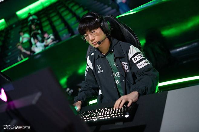 8일 서울 종로구 그랑서울 LCK 아레나에서 열린 LCK 서머 스플릿 OK 저축은행 브리온과 농심 레드포스의 경기서 '에포트' 이상호가 손을 풀고 있다.