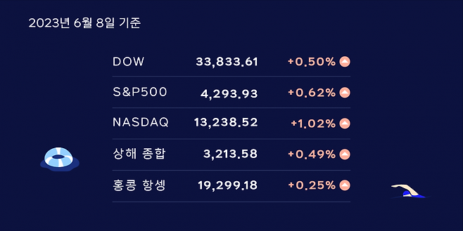 강세장 진입을 이끈 건 애플, 엔비디아, 아마존, 마이크로소프트 같은 빅테크들인데요. 다음주로 다가온 FOMC 정례회의에서 금리인상을 건너뛸 거란 전망이 대세를 이룬 것도 지수 상승에 기여했습니다.