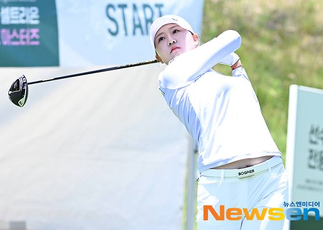 이날 프로골퍼 윤수아가 10번홀에서 티샷을 날리고 있다.