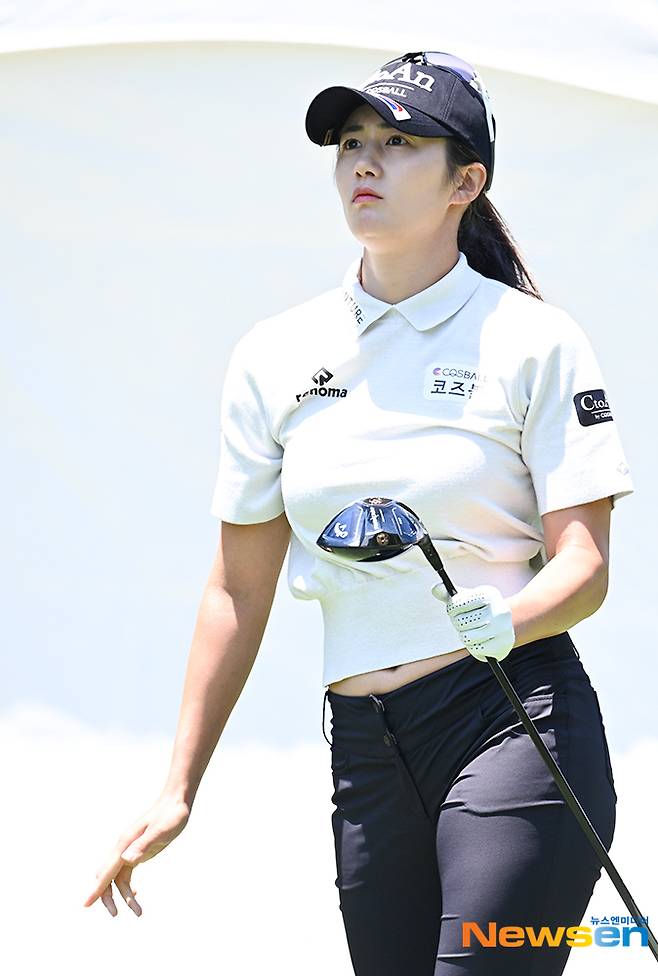 이날 프로골퍼 이세희가 10번홀에서 티샷을 날리고 있다.