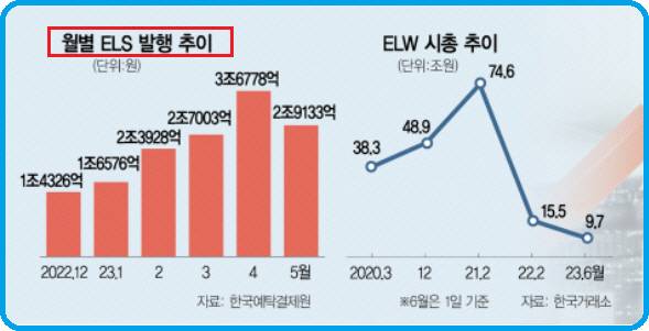 ELS는 기초자산이 주식이나 주가지수인 주가연계 파생결합증권이고, DLS는 기초자산이 원자재, 금리, 신용 등인 기타파생결합증권이다. 파생결합증권은 주식, 원자재, 금리나 그 지수 등과 연계하여 미리 정한 조건에 따라 손익이 결정되는 금융상품이다.