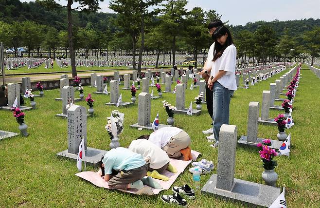 | ▲ [6일 화] 현충일인 이날 서울 동작구 국립묘지에서 참배객들이 가족 묘소를 참배하고 있다. |