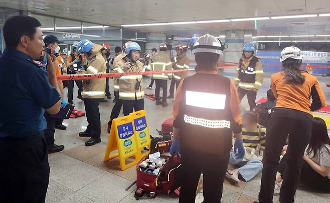 | ▲ [8일 목] 오전 8시 20분께 경기 성남시 분당구 지하철 분당선 수내역 2번 출구 상행 에스컬레이터가 뒤쪽으로 역주행해 이용객 14명이 다쳤다. 이 사고로 이용객 3명이 허리와 다리 등에 상처를 입어 병원에서 입원 치료를 받았으며, 11명은 비교적 가벼운 상처를 입어 치료를 받은 뒤 귀가한 것으로 알려졌다. |
