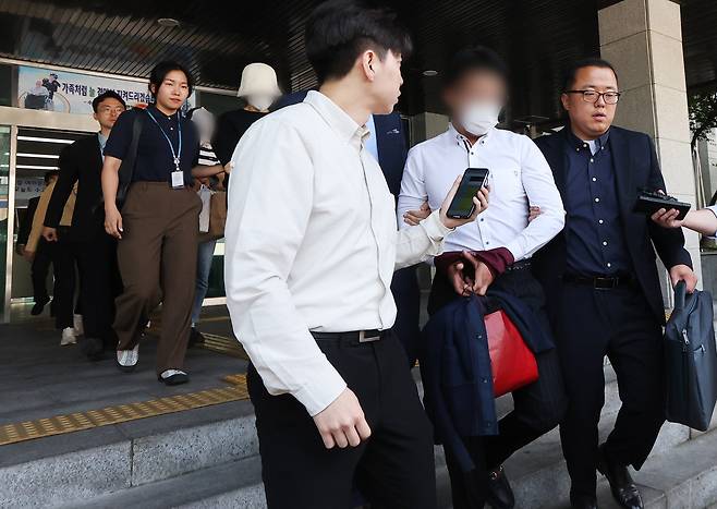 | ▲ [9일 금] 경기 화성 동탄신도시에서 오피스텔 전세 사기 혐의로 수사를 받아온 임대인과 중개사들이 수원남부경찰서에서 검찰로 송치되고 있다. 경기남부경찰청 반부패·경제범죄수사대는 사기 혐의로 동탄 오피스텔 268채 보유자 부부와 43채 보유자 부부, 이들의 임대 거래를 도맡아 진행한 공인중개사 부부 등 총 6명을 검찰에 송치했다. |