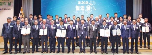 한국철강협회가 9일 서울 대치동 포스코센터에서 ‘제24회 철의 날’ 기념행사(사진)를 열고 유공자 32명과 철강상 수상자 5명을 시상했다.