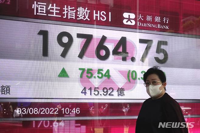 항셍지수는 이날 전일 대비 90.77 포인트, 0.47% 올라간 1만9389.95로 폐장했다. 3거래일 연속 상승했다.