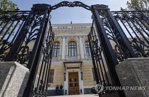 epa10681095 Russian policemen guard near the Russia's Central Bank headquarter building in Moscow, Russia, 09 June 2023. Based on the results of the planned meeting, the Bank of Russia Board of Directors kept the key rate at the level of 7.5 percent per annum. The regulator leaves this figure unchanged for the sixth time. The rate has been at this value since September 2022. EPA/SERGEI ILNITSKY