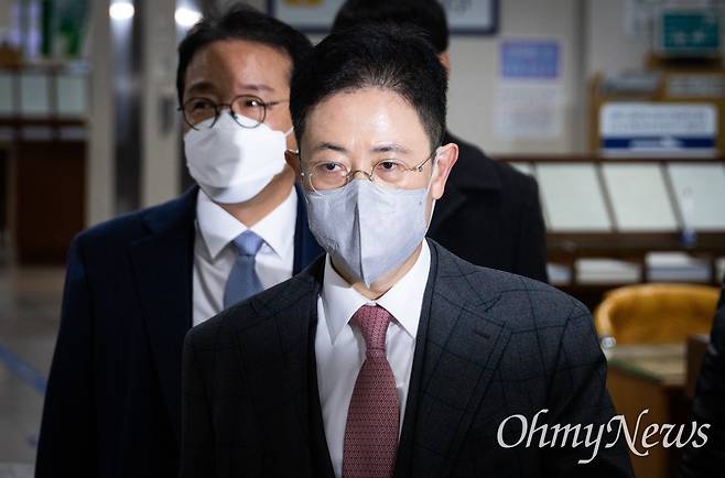 | ▲ 손준성 서울고검 송무부장(전 대검 수사정보정책관)이 21일 오전 서울 서초구 서울중앙지방법원에서 열린 고발사주의혹으로 1심 속행공판에 출석하기 위해 법정으로 향하고 있다. |