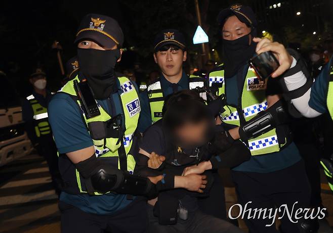 | ▲ 1박2일 투쟁에 나선 비정규직 노동자가 9일 오후 서울 서초구 대법원 앞에서 열린 제2차 노숙문화제 도중 경찰에 의해 강제 해산되고 있다. |