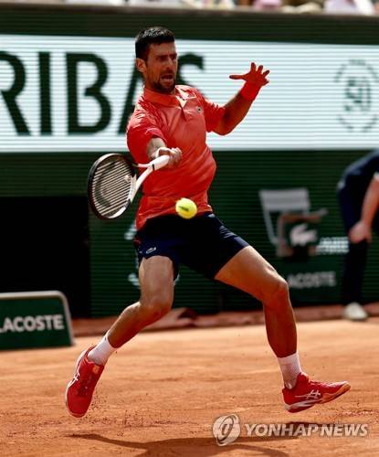 epa10681488 Novak Djokovic of Serbia plays Carlos Alcaraz of Spain in their Men's semi final match during the French Open Grand Slam tennis tournament at Roland Garros in Paris, France, 09 June 2023. EPA/MOHAMMED BADRA