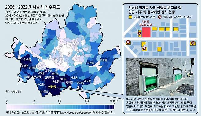 9일 동아일보 취재팀이 지난해 폭우 피해가 컸던 서울 관악·동작구 일대 반지하 가구 45채를 조사한 결과 39채(87%)에 여전히 주민들이 거주 중인 것으로 나타났다. 서울시가 “반지하를 없애겠다”고 밝히며 각종 대책을 내놨지만 주민 대부분은 반지하를 탈출하지 못한 것이다.