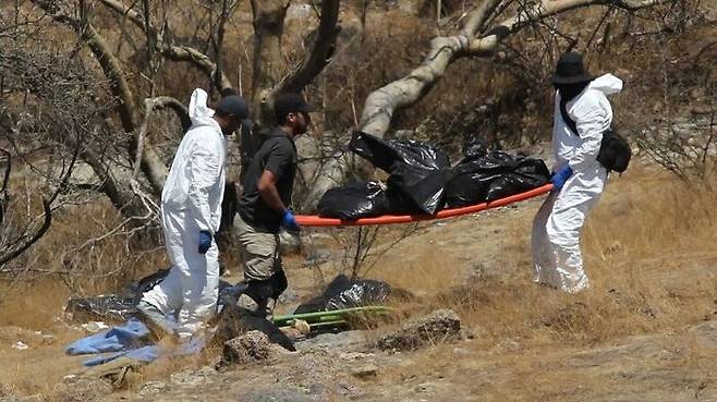 검찰과 경찰은 인력 100여 명을 투입해 강도 높은 수색 작업을 진행한 끝에 멕시코 과달라하라주의 한 계곡에서 이들의 유해가 든 가방을 45개 발견했습니다.