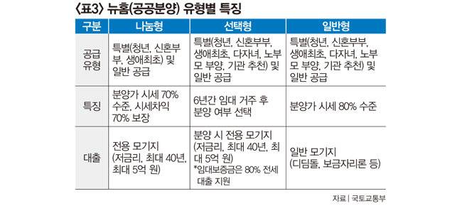 남양주시 남양주왕숙 A19블록과 안양시 안양매곡 S1블록은 시세보다 30% 낮게 분양하는 나눔형(이익공유형)이다. 5년간 거주하고 한국토지주택공사(LH)에 되팔면 처분 손익의 70%를 수분양자가 가져간다. GTX-B노선, 서울지하철 9호선 연장(강동~하남~남양주) 등이 계획돼 있어 서울 접근성이 좋은 남양주왕숙 A19블록은 46·55·59㎡로 구성되며 추정 분양가는 2억6400만~3억3600만 원대다. 안양종합운동장에 인접해 서울지하철 1호선·4호선 생활권인 안양매곡 S1블록은 59·74㎡로 구성되고 추정 분양가는 4억3900만~5억4300만 원대다.