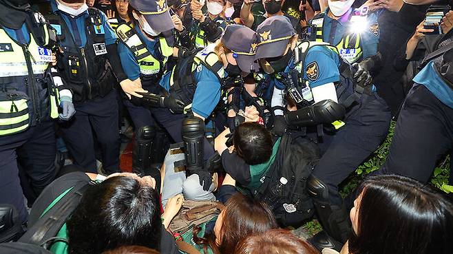 공동투쟁은 "설사 미신고 집회라 하더라도 심각한 공공의 이익이 위협받지 않는 한 강제해산시킬 수 없다"며 "불법은 윤석열 정권과 경찰이 저질렀다"고 덧붙였습니다.