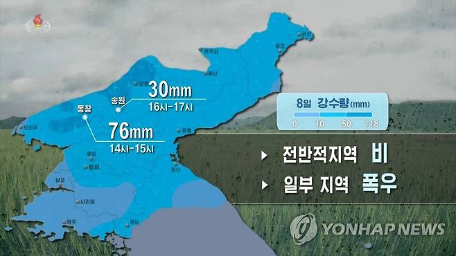 (서울=연합뉴스) 조선중앙TV는 10일 올해 초여름 장마가 시작됐다고 보도했다. 독고혁철 기상수문국 실장은 "6월 1일부터 북부지역을 지나가는 저기압골의 영향을 자주 받아서 북부내륙을 위주로 여러 지역들에서 비가 자주 내렸다"며 "8일부터는 이 저기압골의 대기높은층에 찬공기까지 겹쳐서 올해 보리장마가 시작됐다"고 설명했다.[조선중앙TV 화면] 2023.6.10