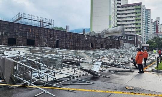 시공사는 복구 작업과 함께 공사장 안쪽 비계도 쓰려질 우려가 있어 조치하는 한편 사고 원인을 조사 중이다.