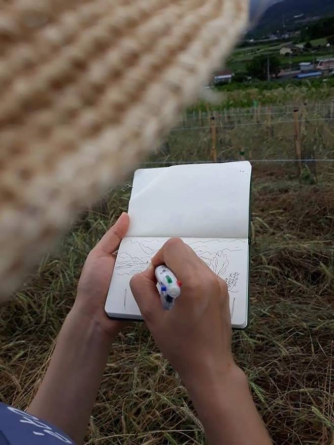 | ▲ 포도밭의 남자 레돔을 졸졸 따라다니며 스케치를 하는 연돌. |
