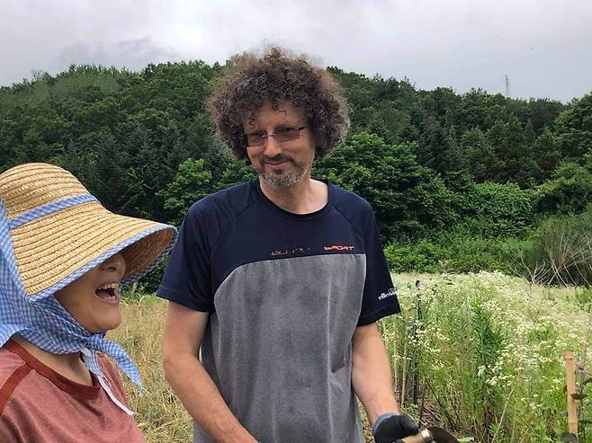 | ▲ 연돌과 나 프랑스 파리에서 만났지만 지금은 충주의 시골 포도밭에서 뒹구는 처지가 되었다. |