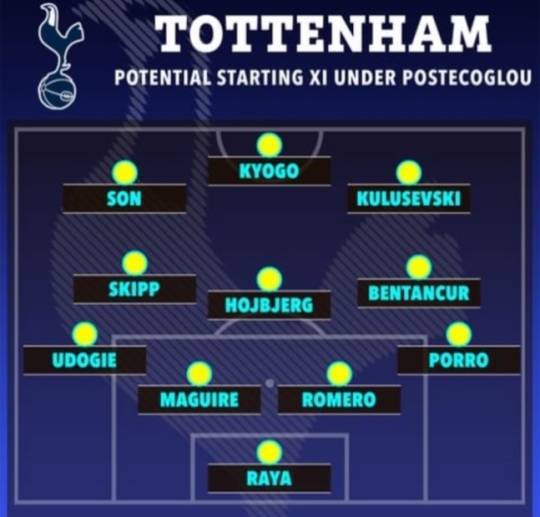 [마이데일리 = 최병진 기자] 엔제 포스테코글루 감독 체제의 토트넘 예상 라인업이 공개됐다.