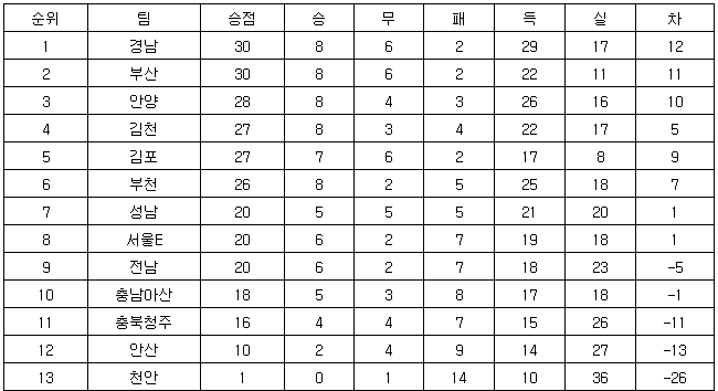 [프로축구2부 중간순위] 10일