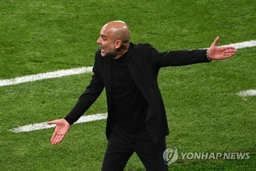 epa10684137 Head coach of Manchester City Josep Guardiola reacts during UEFA Champions League Final soccer match between Manchester City and Inter Milan, in Istanbul, Turkey, 10 June 2023. EPA/GEORGI LICOVSKI