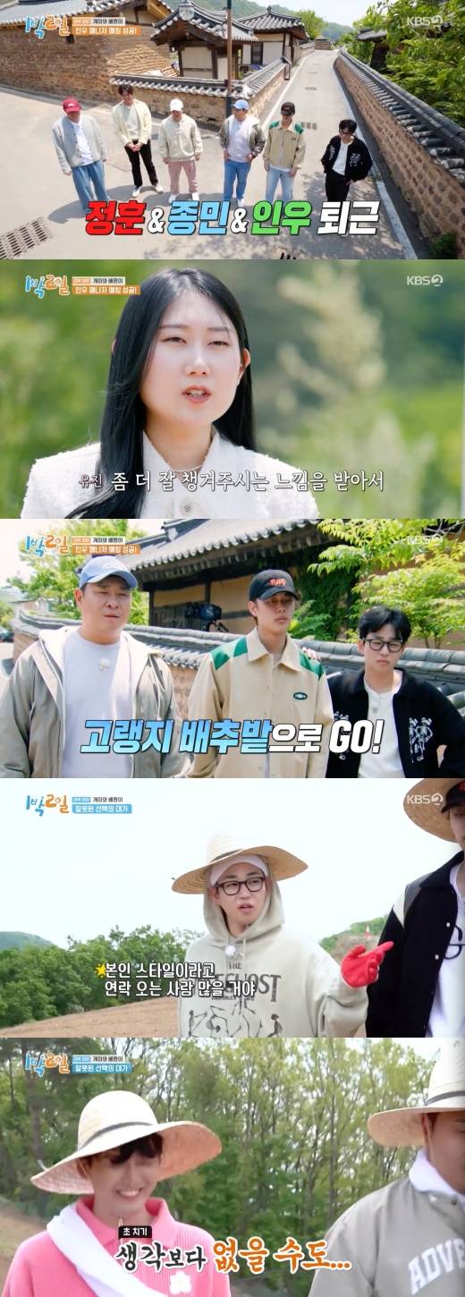 나인우 매니저, 소개팅 성공→문세윤·유선호·딘딘 배추밭 行 (‘1박 2일’)