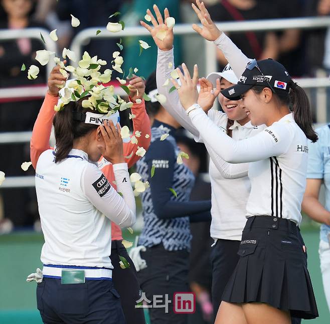 [포토]박민지 '화려한 축하 꽃잎 날리며'