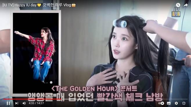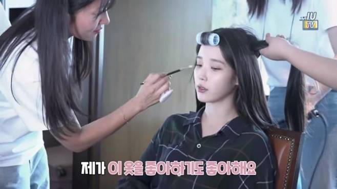 최근 생일 브이로그를 올린 아이유. 오버사이즈 체크 셔츠를 입고 메이크업을 받는 그에게 ‘애착 셔츠’로 유명한 옷에 관해 묻자 이렇게 답했다.