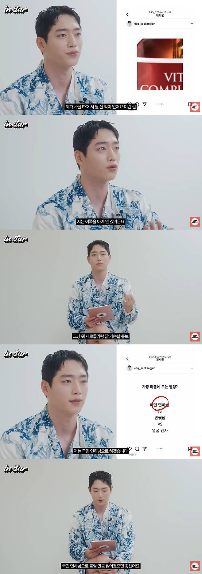 이어 서강준은 PX에 파는 물품 일부 사진을 보고 이름을 맞히기로 했다. 마스크팩 제품의 일부 사진을 본 서강준은 "얼굴에 바르는 거 같은데 제가 PX에서 뭘 산 적이 없다. 이런 걸. 항상 저는 원래 쓰던 것들을 써가지고"라고 고민에 빠졌다. 답을 알고 난 후에는 "이게 PX에 있냐. 있었을 수도 있는데 저는 이 쪽을 아예 안 갔다. 제로콜라랑 닭가슴살 큐브, 냉동 있는 데만 갔다"고 군대에서도 철저하게 관리를 했음을 언급했다.