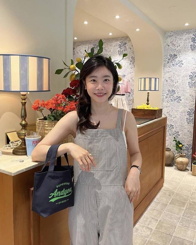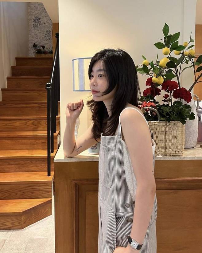 스트라이프 패턴의 오버올을 편안한 느낌으로 스타일링한 소진. 이너로는 슬리브리스 탑을 매치해서 여유로우면서 시원한 룩을 선보였네요. 여름철 일상에서 참고하기 좋은 스타일링이에요.