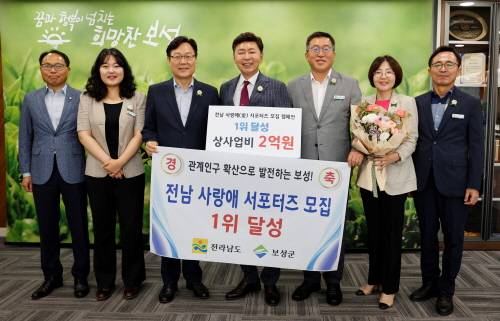전남 보성군은 12일 전라남도가 22개 시군을 대상으로 실시한 '전남 사랑애(愛)서포터즈 모집 캠페인' 결과 군부 1위를 차지해 상사업비 2억 원을 확보했다고 밝혔다.
