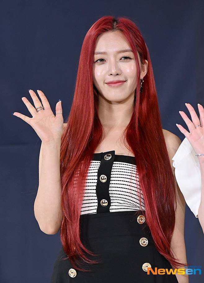 전 걸그룹 AOA 찬미였던 가수 도화가 6월 13일 오후 서울 종로구 부암동 HW컨벤션에서 열린 엠넷(Mnet) '퀸덤퍼즐' 제작발표회에 참석해 포토타임을 가지고 있다.
