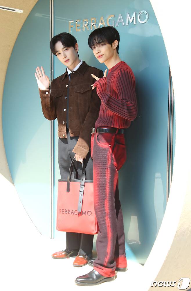 (서울=뉴스1) 권현진 기자 = 더보이즈 현재와 선우(오른쪽)가 13일 서울 성동구 성수동에 위치한 카페에서 열린 패션 브랜드 포토행사에서 포즈를 취하고 있다. 2023.6.13./뉴스1