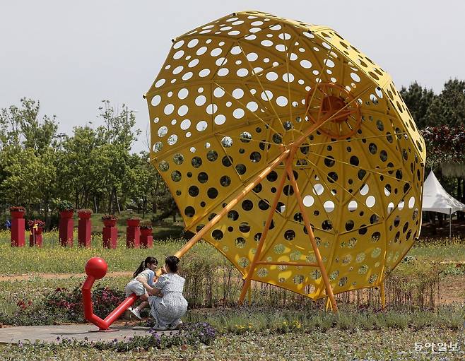 공항 인근 공원에 설치된 대형 우산. 비행기 대신 우산 타고 멀리 여행 가고 싶네요.