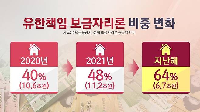 소득 기준과 대출 한도를 늘린 '특례보금자리론'이 출시된 올해에도 유한책임형은 초반부터 비중이 절반이 넘으며, 찾는 발길이 이어지고 있는 모습입니다.
