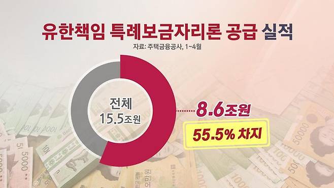 오늘(13일) 주택금융공사에 따르면, 올 들어 4월까지 유한책임 특례보금자리론은 약 8조6천억원으로 집계됐습니다.