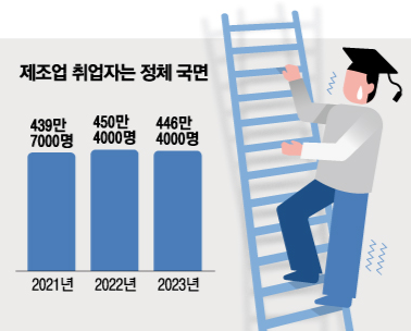 청년 일자리는 1년 만에 10만명 가까이 줄었다. 제조업 일자리도 경기부진 속에 다섯 달째 감소했다.