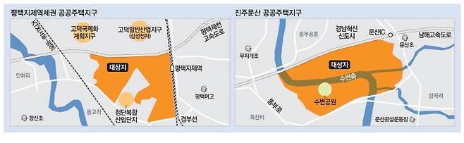 한편 정부는 경남 진주시 문산읍 일대 140만㎡를 신규 택지로 개발해 총 6000가구를 공급한다. 진주문산 일대는 정부가 지정한 우주산업클러스터 위성특화지구로 한국항공우주(KAI) 등 우주·항공 분야 주요 기업이 위치한다. 정부는 진주문산 신규 택지와 진주역, 진주고속터미널을 연결하는 교통망을 확충해 광역철도역과 터미널까지 10분대 접근이 가능한 경남 서부권 광역교통 요충지를 만든다는 계획이다.