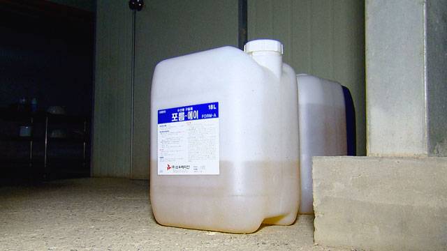 전남 영광의 한 장어 양식장. 입구에 들어서자마자 하얀 통에 담긴 '수산용 포르말린' 을 볼 수 있었습니다. '수산용 포르말린'은 물에 포름알데히드 37%를 섞은 것으로, 해양수산부가 지난 2006년 수산용 구제제, 즉 기생충 등을 제거하는 용도로 사용을 허가했습니다. 원료인 포름알데히드는 '1급 발암물질'입니다. 이때문에 도입 당시에도 수산물에 미치는 영향과 관련해 논란이 있었지만 물과 희석해 소량을 사용하고, 출하 기간을 지키면 어류에 포르말린이 잔류하지 않아 안전성에 문제가 없는 것으로 판단했습니다. 미국과 캐나다 등 일부 국가에서도 사용하고 있고, 무엇보다 기생충 등 구제에 효과가 탁월하다는 이유가 컸습니다. 양식장 관계자들도 "수산용 포르말린은 필수"라고 말합니다. 특히 치어(어린 물고기)를 입식할때는 '수산용 포르말린'을 안 쓰는 곳이 없을 정도라고 합니다.