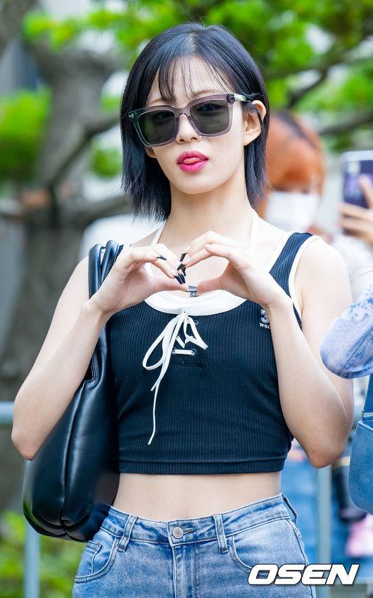 프로미스나인 이채영이 리허설 참석을 위해 방송국에 들어서며 포즈를 취하고 있다. 2023.06.16 /rumi@osen.co.kr