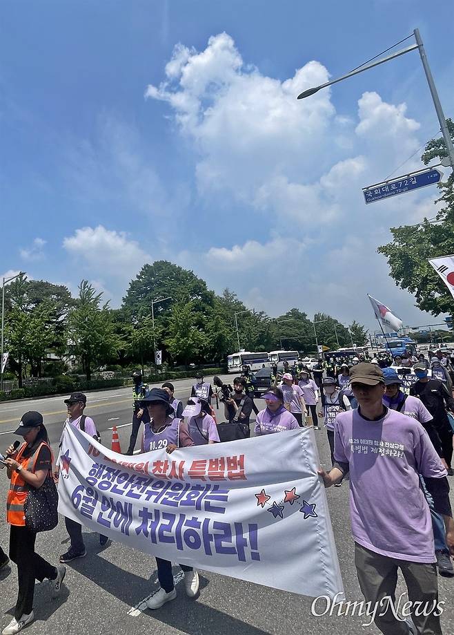 8.8km 행진, 마지막 행선지는 더불어민주당 당사. 이상은씨 어머니 강선이씨가 "부끄럽고 죄송하다"며 입을 뗐다. '연대'의 마음이었다.
