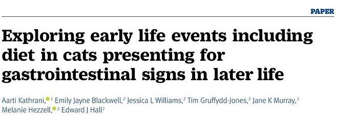 어릴 때 먹는 사료가 평생의 건강을 좌우한다는 연구가 있습니다. 영국에서 1,212마리의 고양이를 대상으로 한 연구에서 어린 시절 소화기 증상을 보이며 아픈 경우 혹은 세계수의사회 기준을 충족하지 못하는 사료를 먹은 경우, 계속 동물병원을 갈 가능성이 높았음을 확인했습니다.