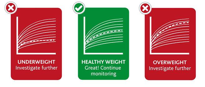 (우) 그래프가 곡선 두 개 위로 올라간다면, 비만의 가능성이 높아 급여량을 다시 계산해 줄 필요가 있습니다.