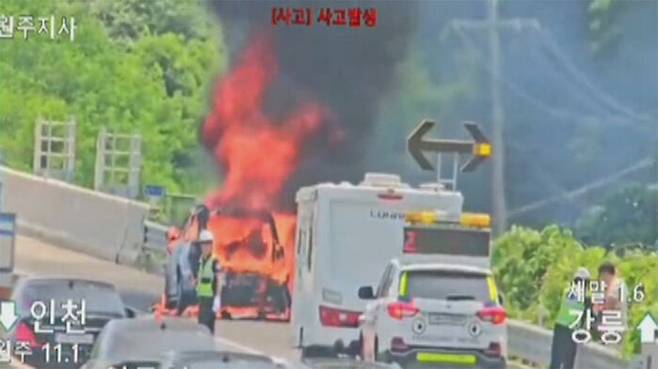 다행히 30대 운전자가 갓길에 차량을 세운 뒤 대피해 인명피해로 이어지진 않았습니다.